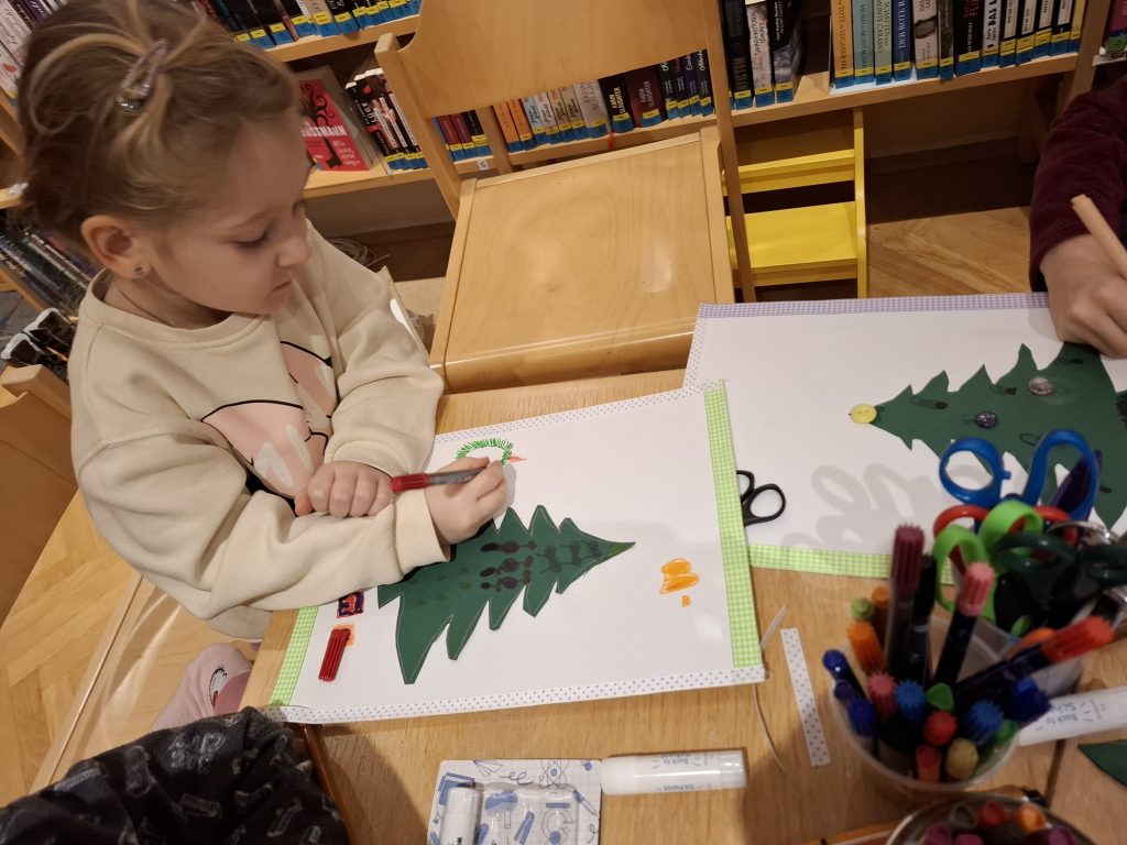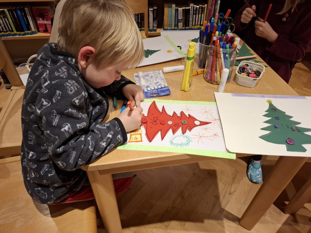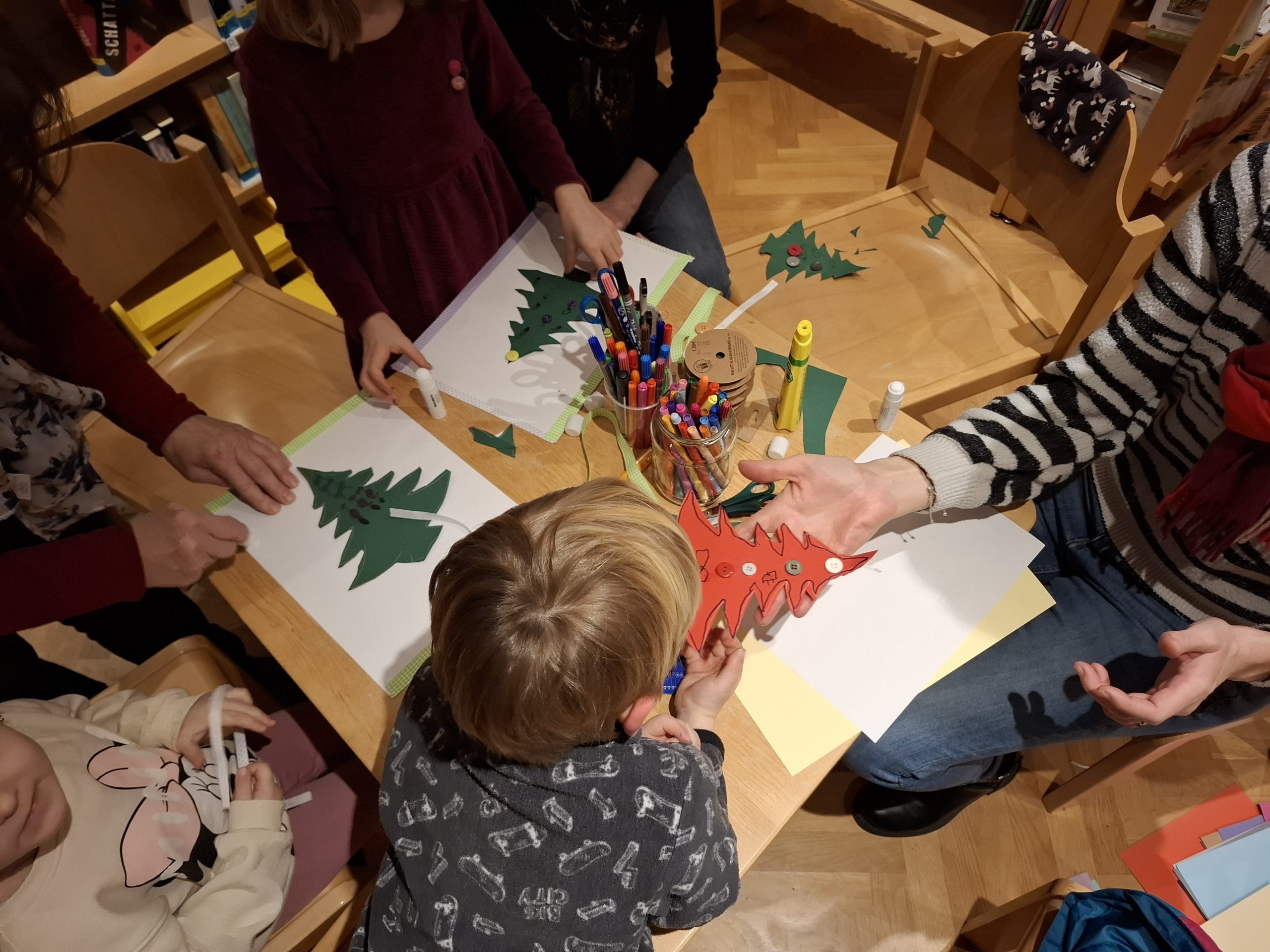 Wir begleiteten „Tille Tannenduft“ beim Schreiben an das Christkind, und bastelten Christbäume aus Papier. Hörten Weihnachtslieder und sangen dazu. Zum Schluss genossen wir noch frische Waffeln mit Apfelmus oder Staubzucker.